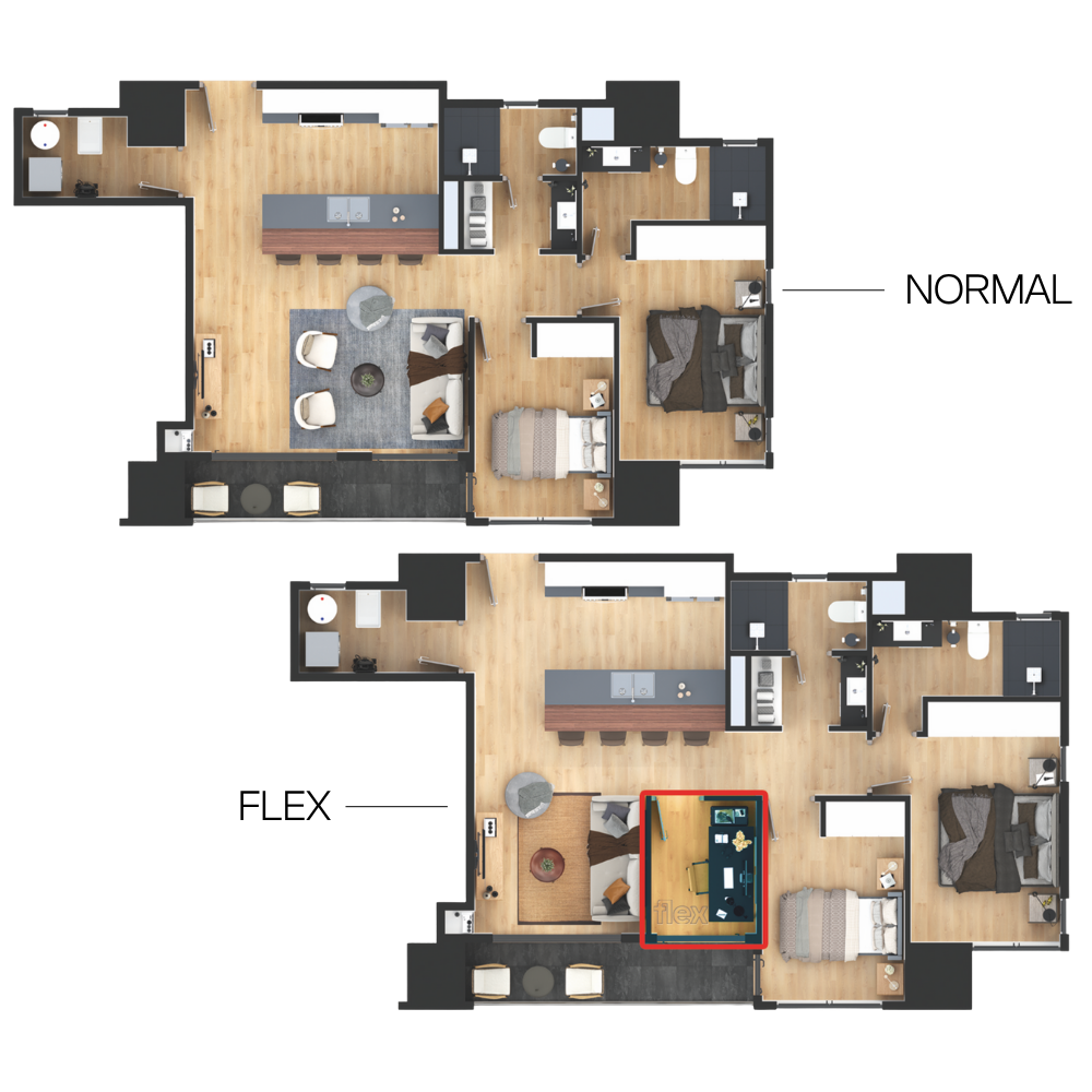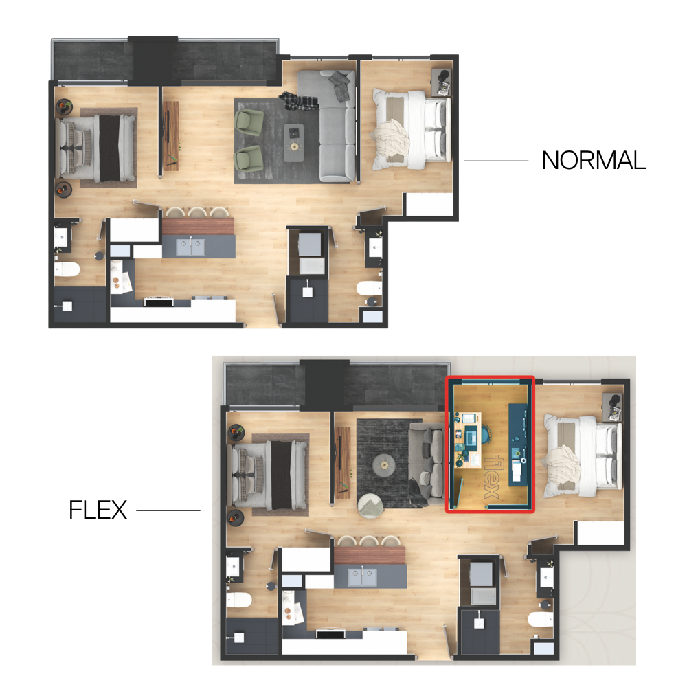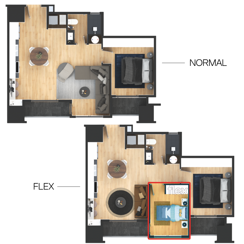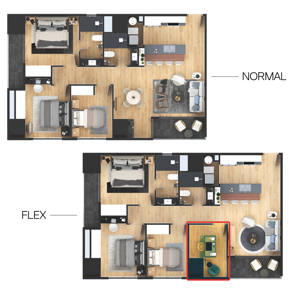 2 habitaciones + espacio flex